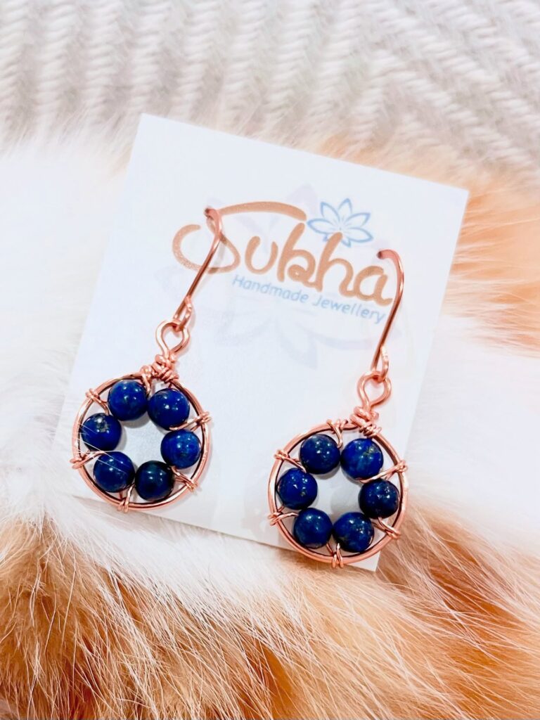 This version features rich lapis lazuli beads, known for their connection to truth, intuition, and inner wisdom. Lightweight yet bold, these hoops are made to inspire harmony — in your look and your energy.